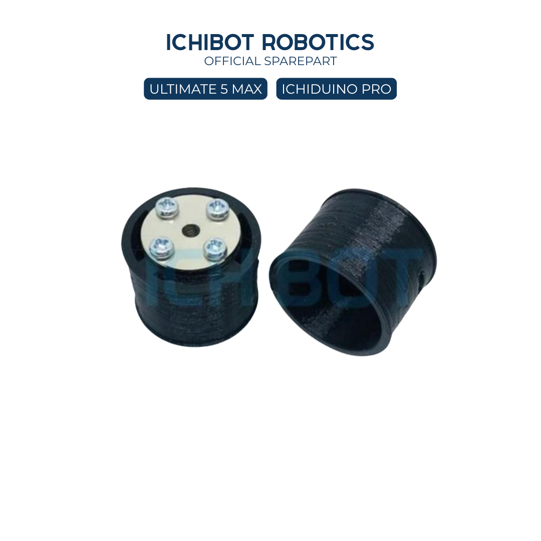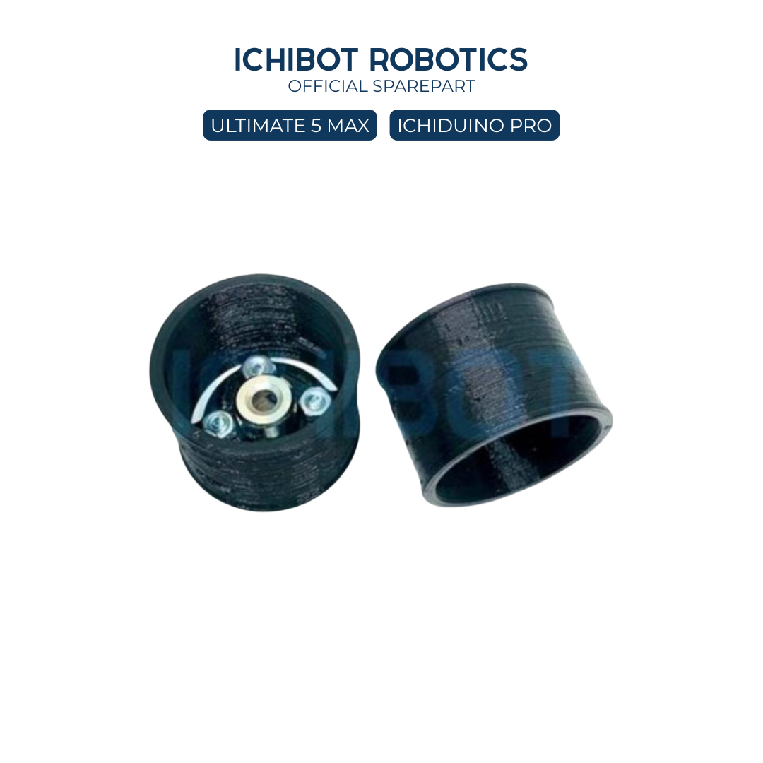 Roda 30mm untuk motor DC shaft 4mm pada robot mini Ichibot. Diameter 30mm memberikan keseimbangan kecepatan dan torsi untuk robot edukasi.